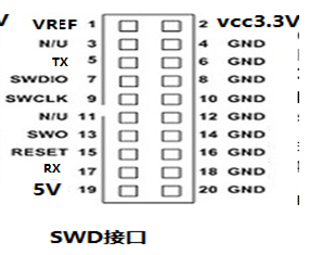 TMS→PA13TCK→PA14TDI→PA15TDO→PB3nTRST→PB4(可选)GND→GND3.3V→3.3V(可选)