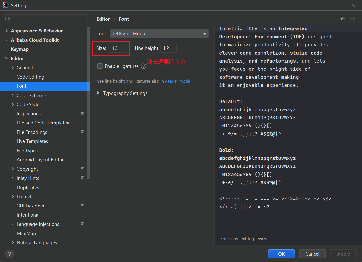 快速上手IDEA调节字体大小。