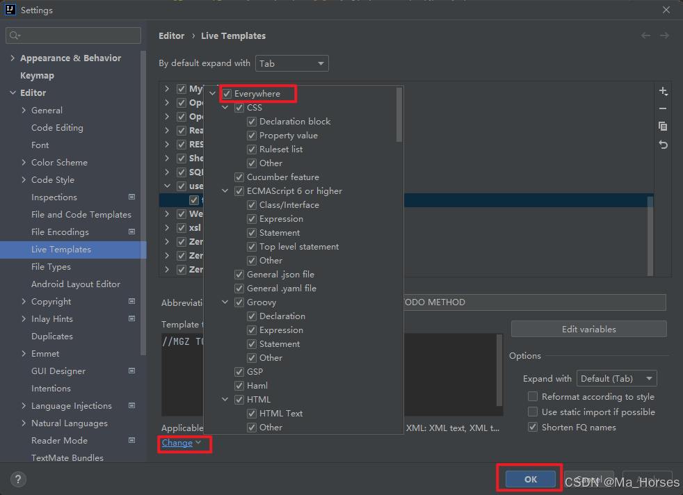 1.首先打开File–>Settings…–>Editor–>Live Templates