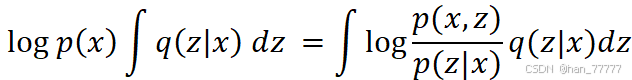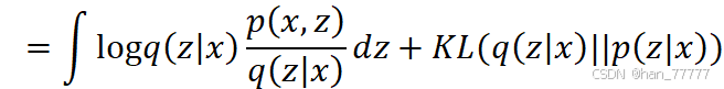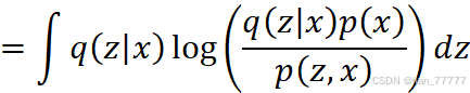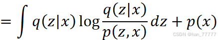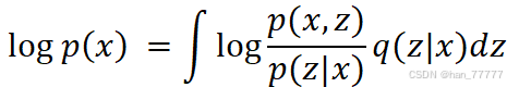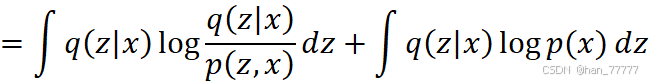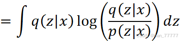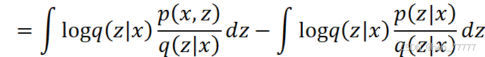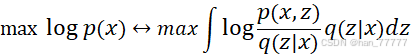 可以看到,无法去遍历每一个z。同时我们知道,我们需要最小化q(z|x)与p(z|x)之间的差异,因此可以得到,