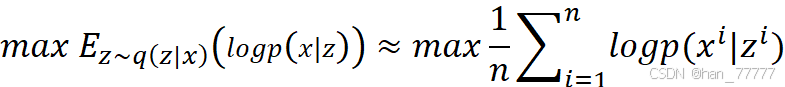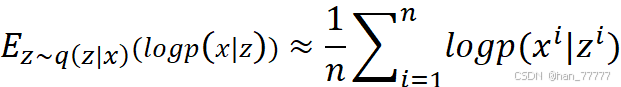这里由于无法实现对z的全部采样遍历,因此采用蒙特卡罗进行估算,假设从q(z|x)中采样n个样本,