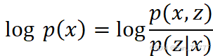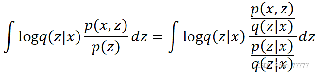 现在单独看一下上式右边,需要将隐变量Z引入, 因此根据条件等式的定义可以得到
