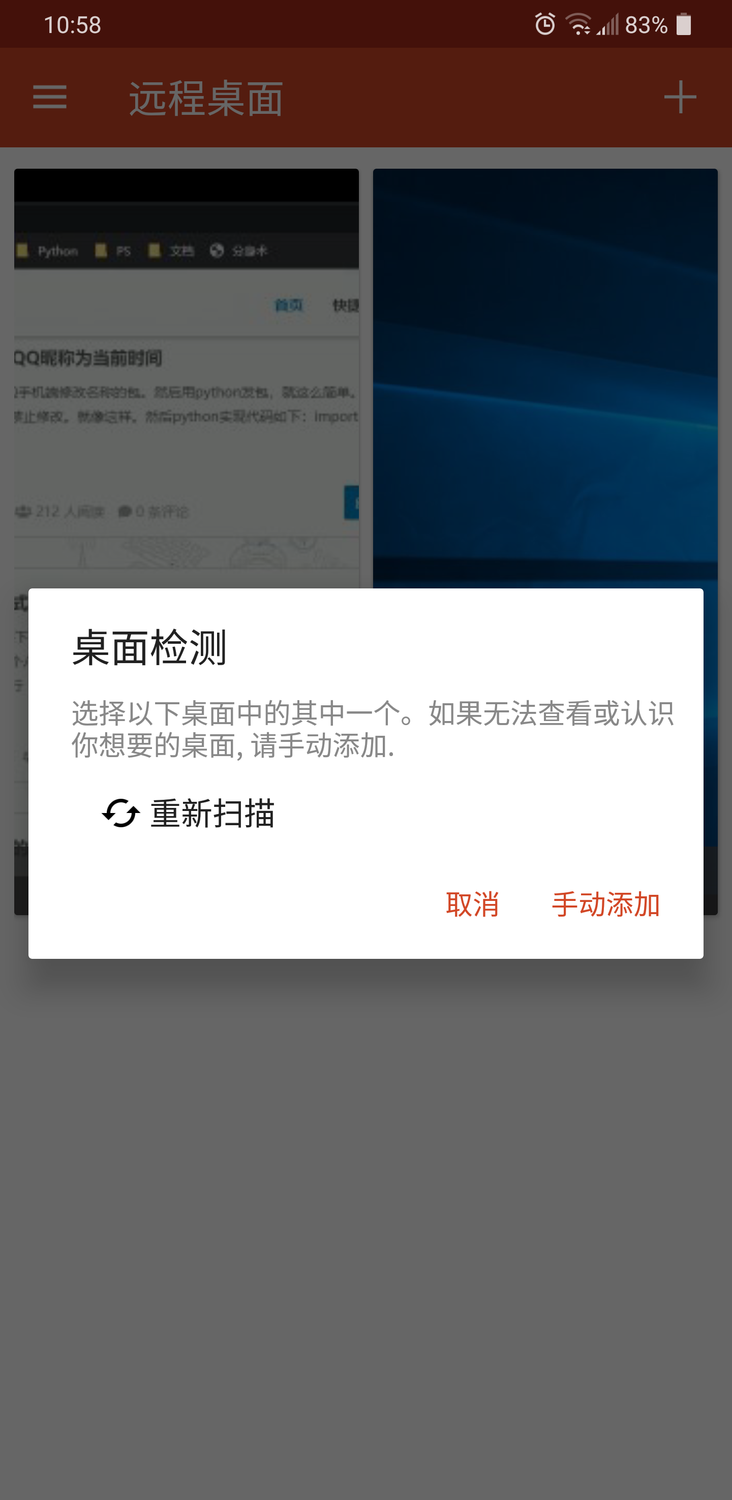 当时只是开启了,然而并不知道怎么连接。然后看到空间有人发了一个微软远程桌面APP,这个手机软件我以前一直用来连接自己的服务器。恍然发现还能连接局域网内的电脑。