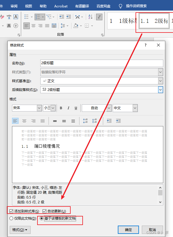 添加一个样式之后,勾选 添加到样式库之后,以后新建的文档里就有新建的样式了。根据自己需要可以选择建立多个几级标题,一般到四级标题就可以了。