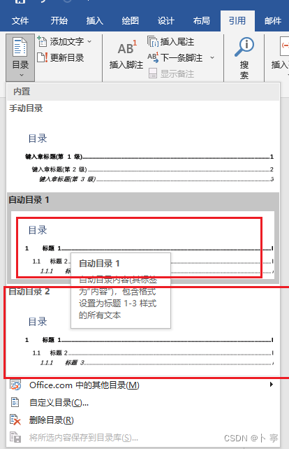 生成自动目录如下图所示: