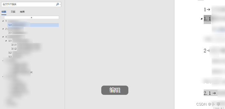 文档刷好之后,即可以实现自动排序。如下图所示,;例如鼠标点击1.1,既可以看到同级别的标题都被显示被选中。