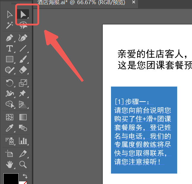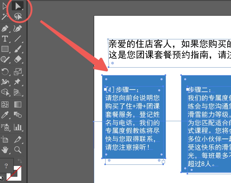 对于多个元素,也就是多个图层,如果要选中,那么用工具栏中的实心箭头符号。如图所示: