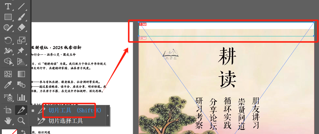 选择“切片工具”,在需要填充的位置画出一个矩形。