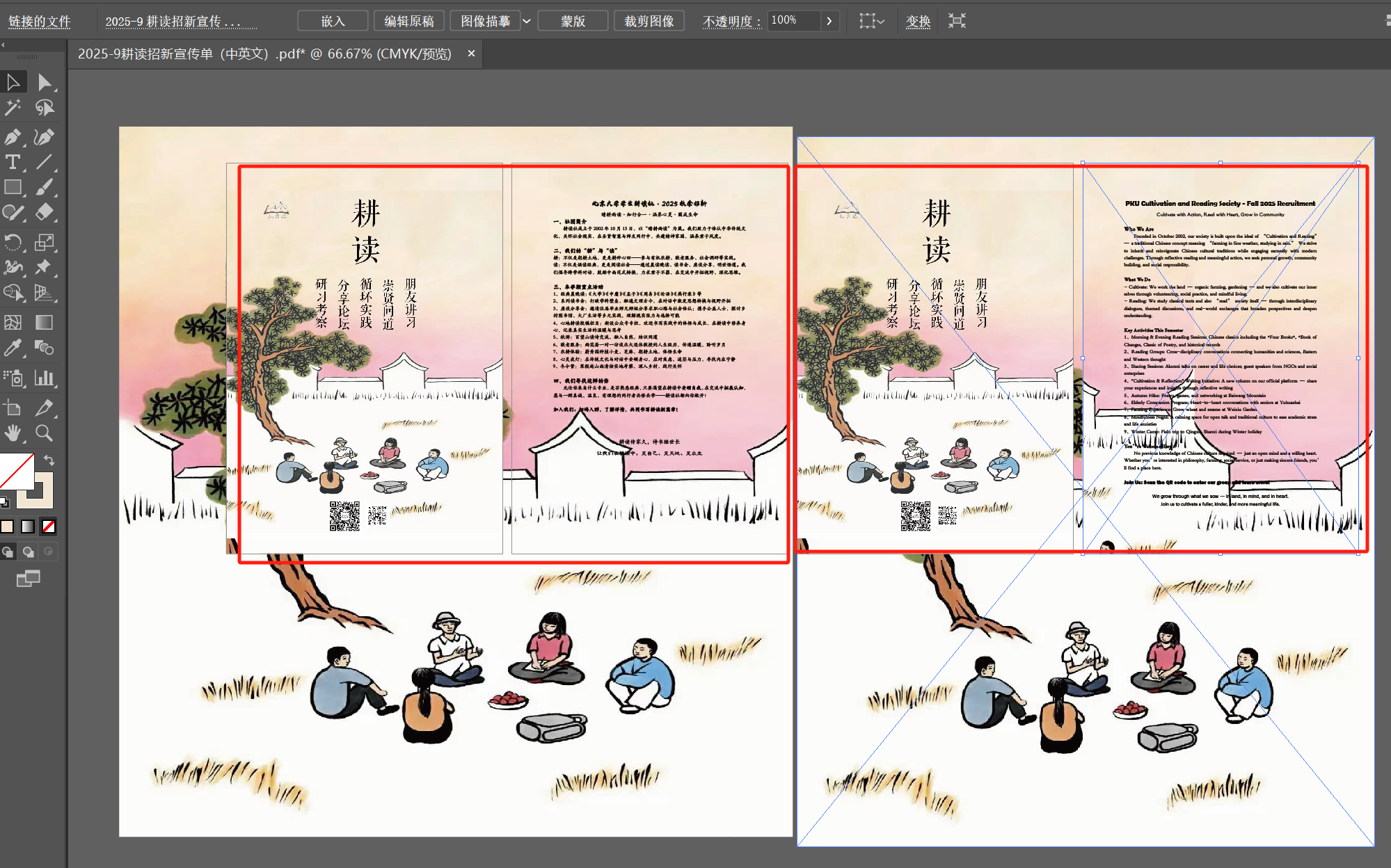 将PDF文件用illustrator 打开,统一为A4纸张大小后,发现上下区域出现白边,这是由于原有pdf并非A4大小而造成的。如图所示: