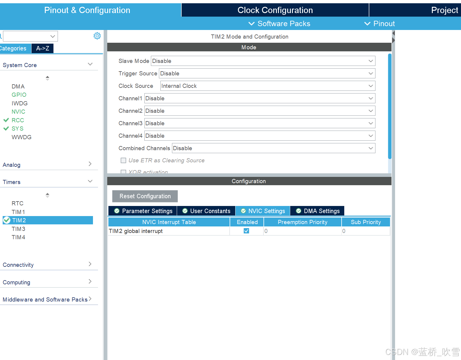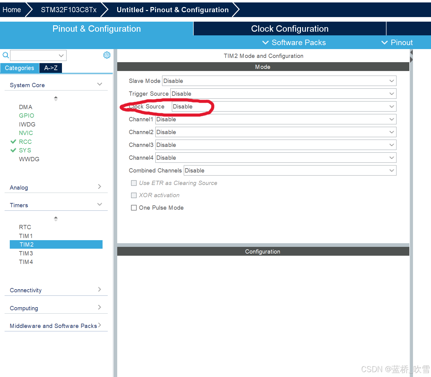 2.在RCC中选择内部晶振(有需要也可以选外部晶振)