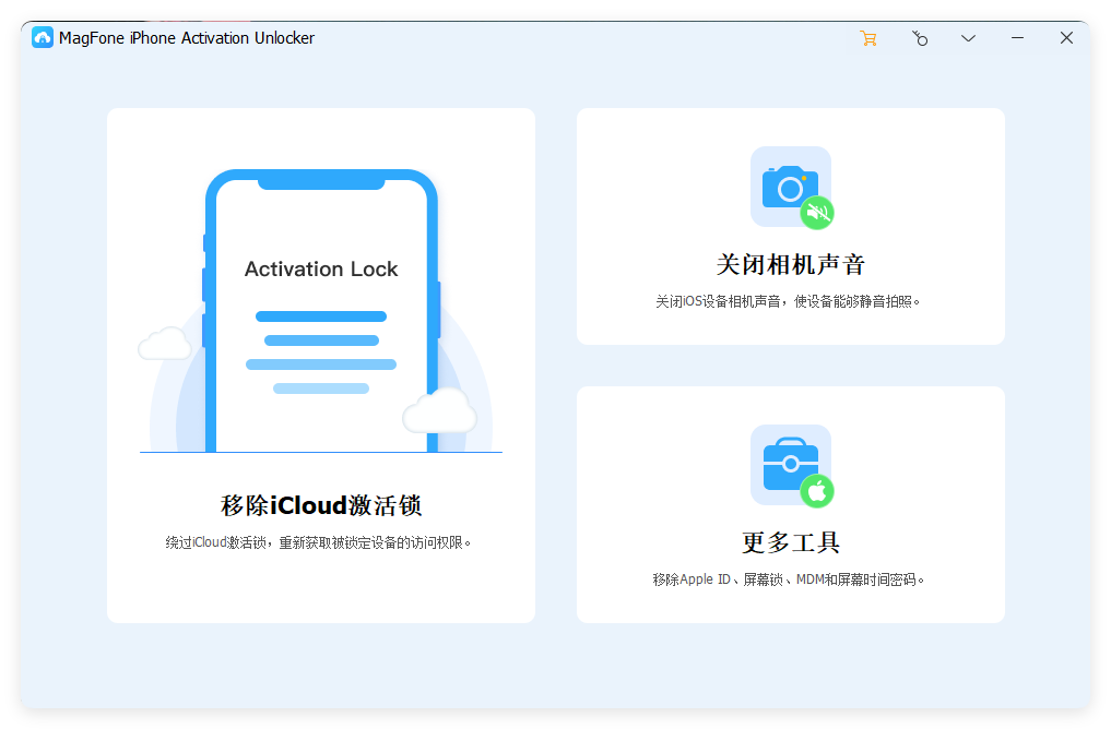 MagFone Activation Unlocker 是一款软件工具,允许用户在不需要前任所有者凭据的情况下移除iCloud激活锁。它支持多种iOS设备和版本,为那些被锁定在设备外的用户提供了方便的解决方案。