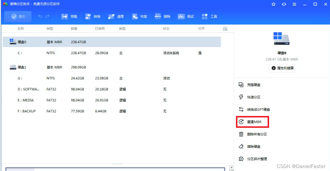 3.试试用傲梅分区助手重建MBR (第一次用,选择后,记得点击左上角的提交)
