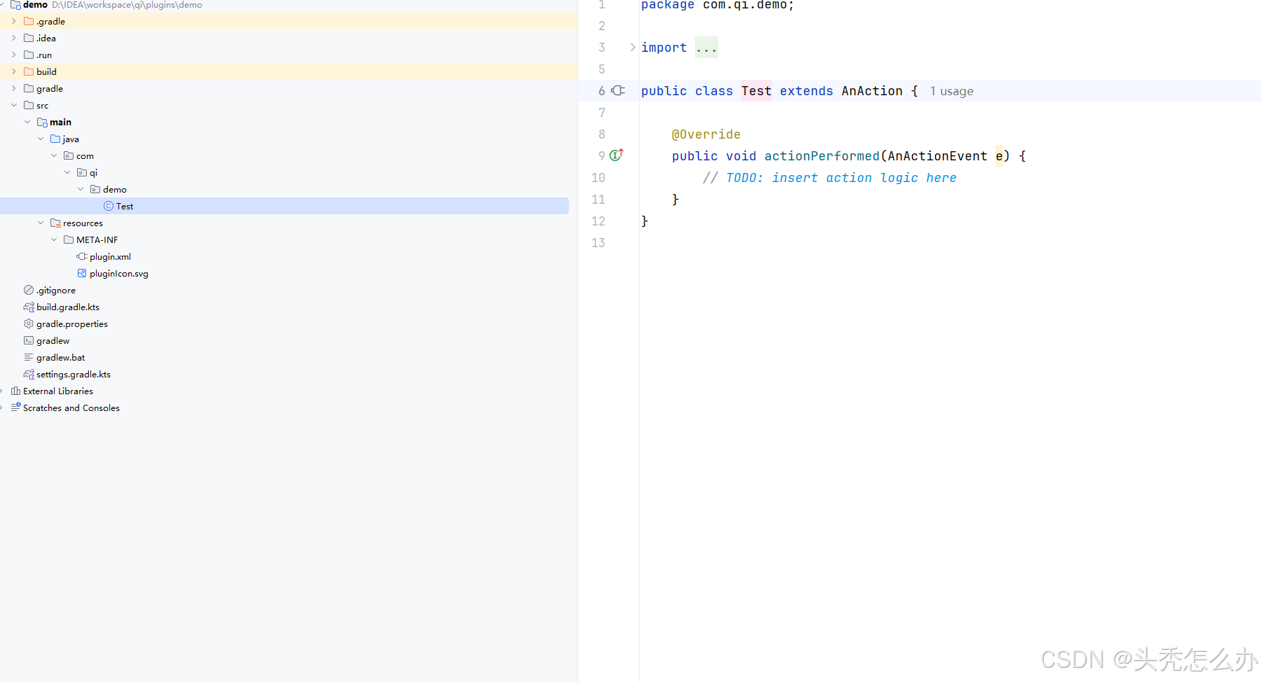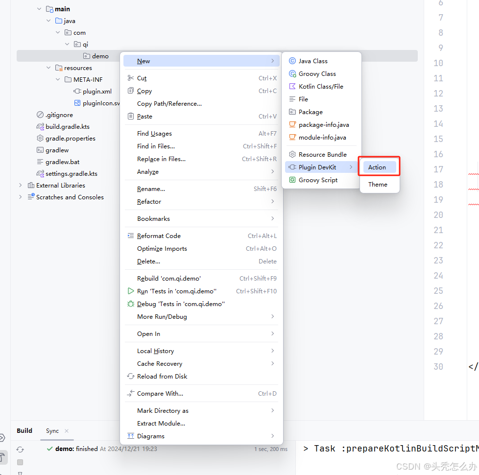 右键点击包名,点击new ,会看到Plugin DevKit ,点击并选择Action