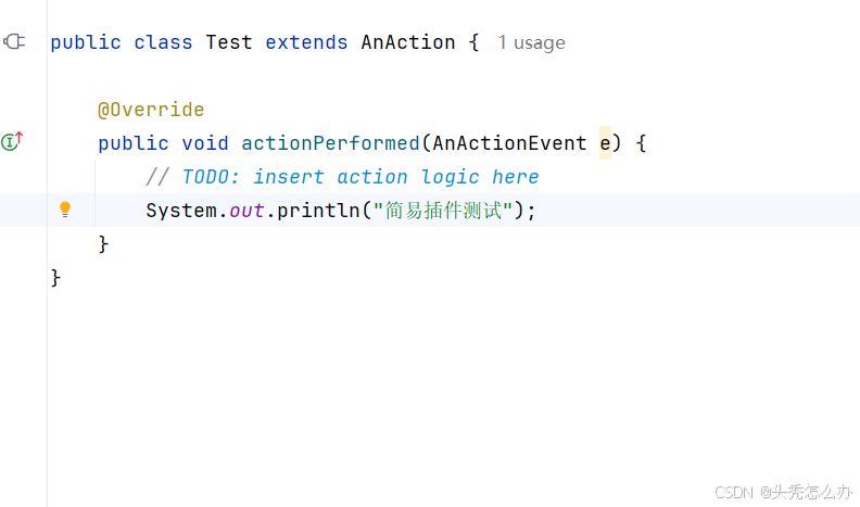 下图就是创建的类的样式, 当点击创建的按钮的时候就会执行方法内的代码