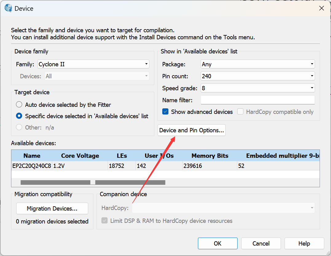 - 启动 Quartus II 建立一个空白工程,选择的器件为 Altera 公司的 Cyclone 系列的 EP2C8Q240C8 芯片,命名为 keyarray.qpf;