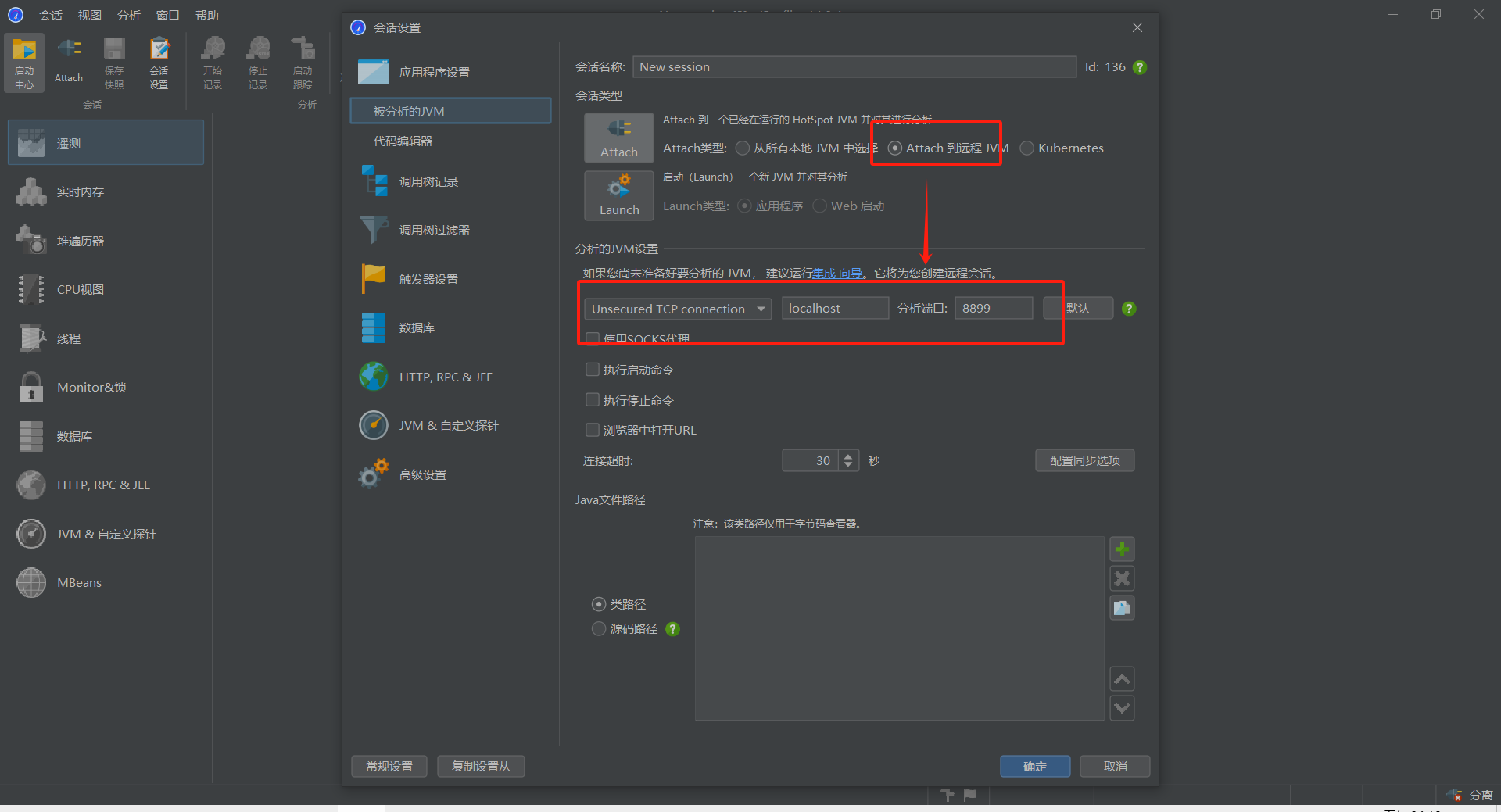 attach模式选择远程JVM配置连接