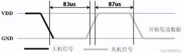 - 响应信号:DHT11拉低总线83±5ms后拉高响应
