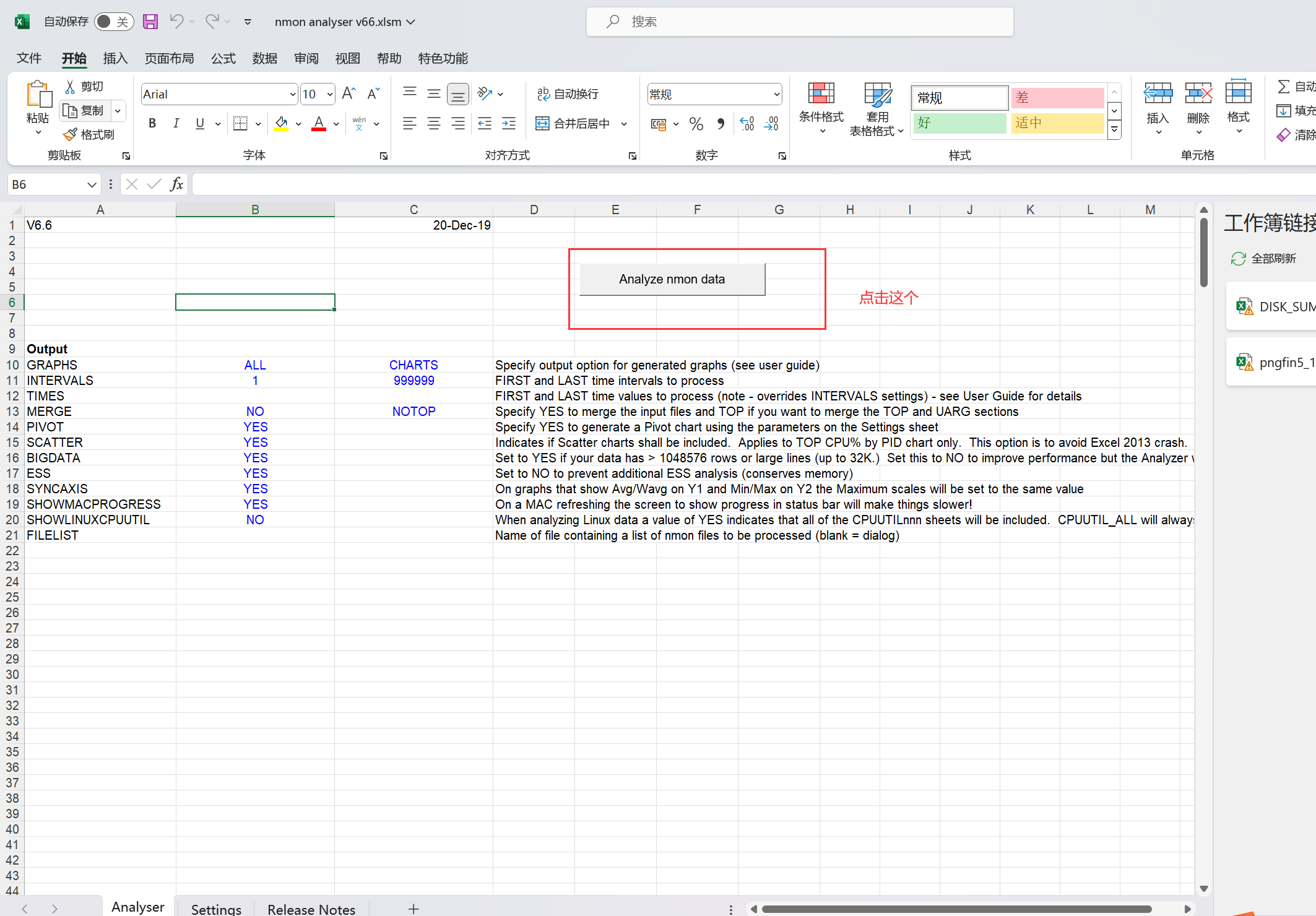 打开 nmon analyser v69_2.xlsm 文件