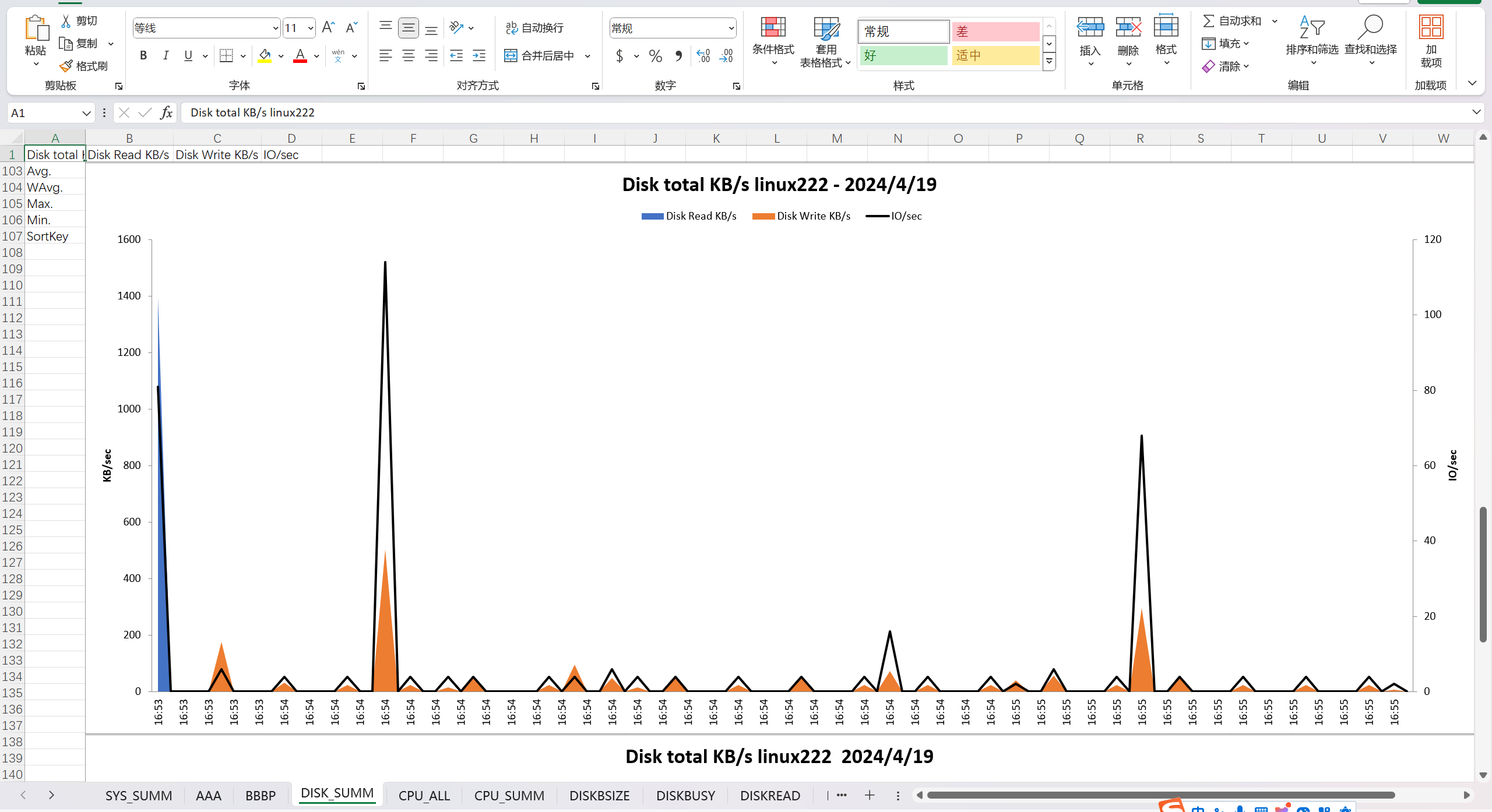 DISK_SUMM:展示每秒磁盘读写和总读写大小