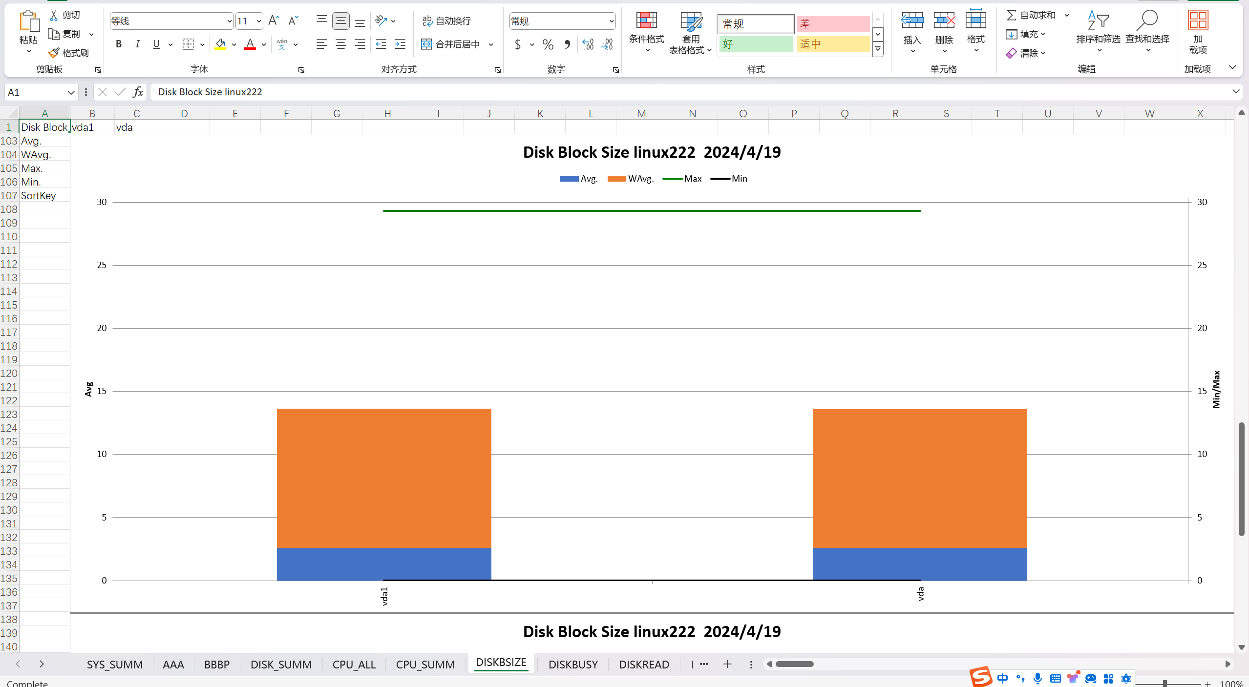 显示每个磁盘最大、最小、平均值的传输块大小
