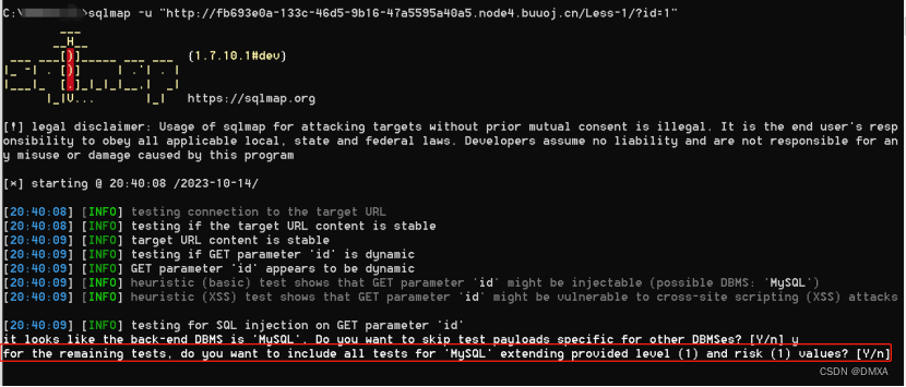 再次询问:GET parameter 'id' is vulnerable. Do you want to keep testing the others (if any)? [y/N]