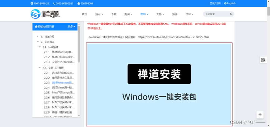 3.往下翻阅,你就可以找到禅道安装的教程视频,然后就可以根据视频来进行安装操作。