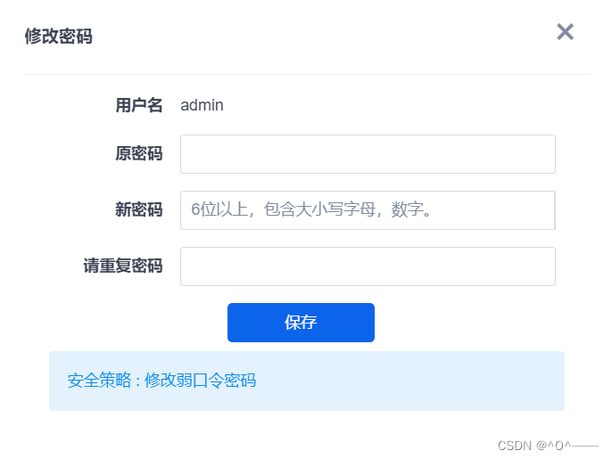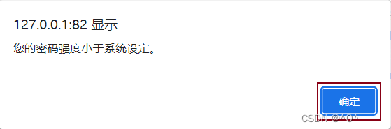 PS:如果你觉得你怕以后忘记密码的话,也可以不改,直接输入 “admin” 的原密码 “123456”,但是它会弹出该弹窗(提示你的密码强度较弱),直接点击确定,然后进行保存就好了。