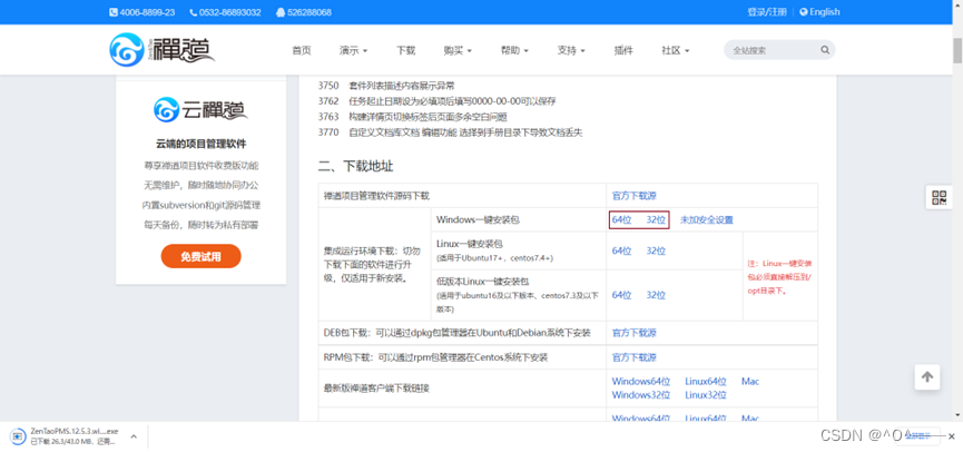 3.下载后会得到 ZenTaoPMS.12.5.3.win64.exe 文件,双击打开;