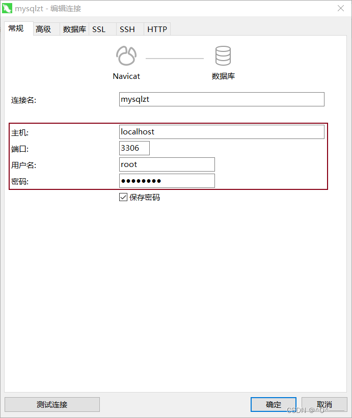 提示:禅道默认的数据库密码可以去禅道的集成面板进行修改,修改之后,在 Navicat 连接的 密码:写的就是你修改过后的密码了。