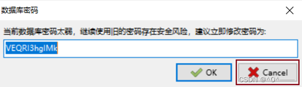 9.弹出该弹窗,让你修改数据库密码(很大几率会修改失败),直接点击 ❌ Cancel(取消) 就好了。