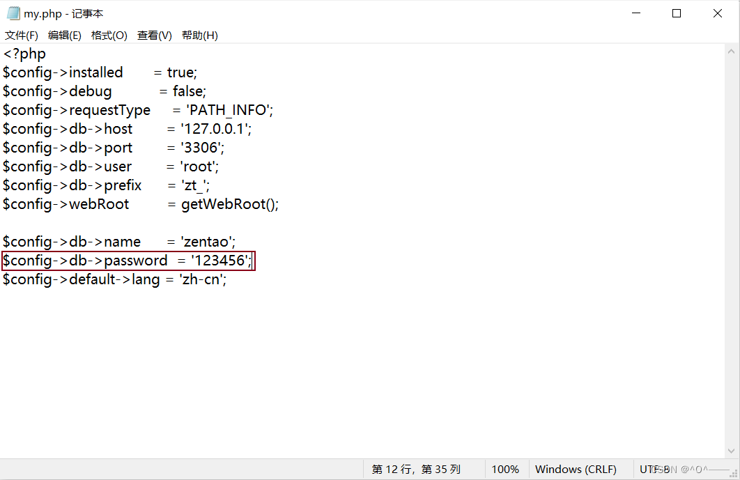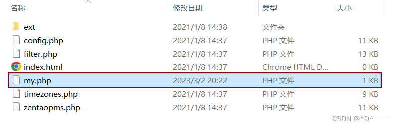 1.目录在 xampp 文件夹内的:xampp/zentao/config,点击 my.php 文件进入;