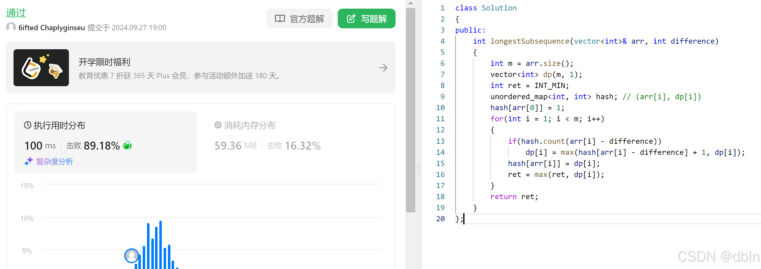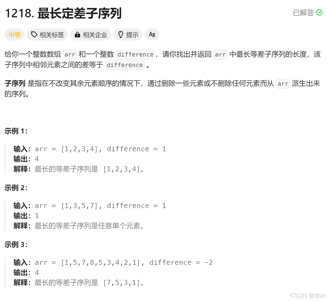 dp[i] = max(hash[arr[i] - difference] + 1, dp[i]);