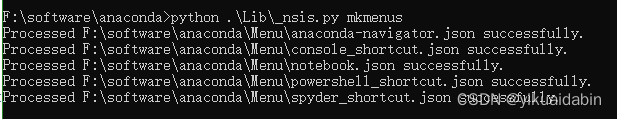 4、然后输入 python .\Lib\_nsis.py mkmenus回车。3、进入到Anaconda安装路径。这时候菜单列就可以看到了。