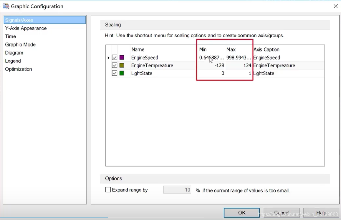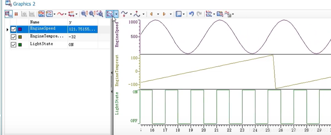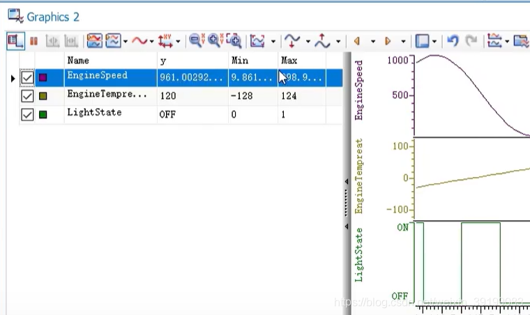 在graphic窗口的左侧会实时显示信号的值,同时可以设置显示最大最小值等。