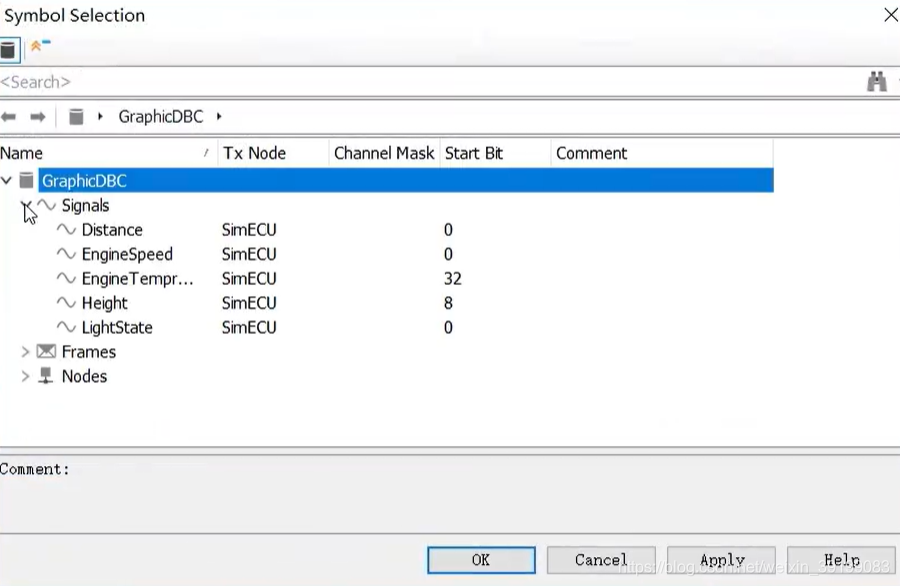 在Graphic窗口的左侧属性栏右键选择"Add Signals",然后就可以在弹出的对话框里选择dbc文件中需要观测的信号。