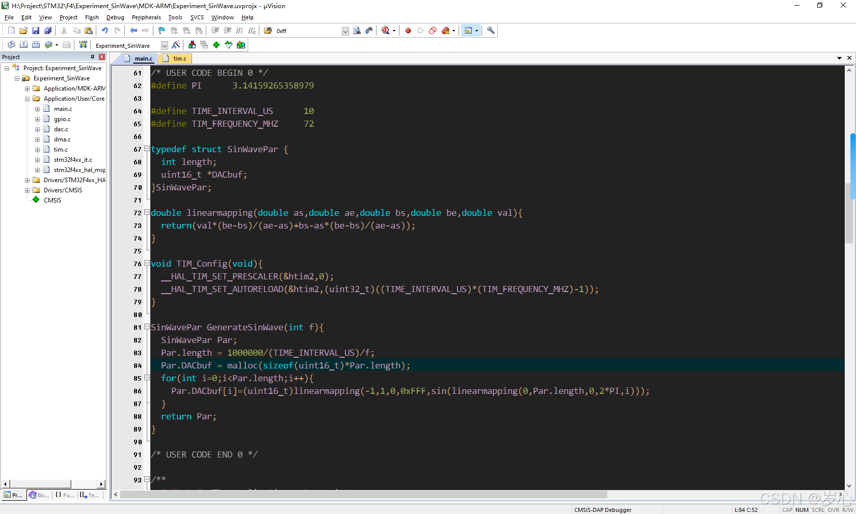 TIM_Config:定时器参数的配置,单独写出来是为了方便后续修改正弦波参数