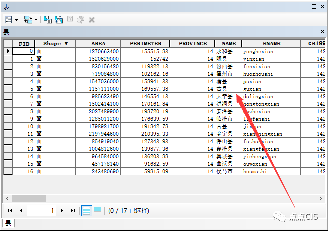 查看属性表,县的名称是name字段