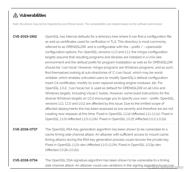 在3.12页面向下拉,左侧可以看到该地址所连设备存在的安全漏洞信息,如图4.5所示。
