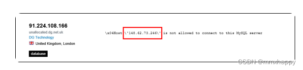 点击任意一个公网IP地址链接,可以进一步查看详情。从图4.7可以看出,之所以被shodan扫描并发现数据库端口,是因为该机构信息平台的安全管理严重忽视导致。