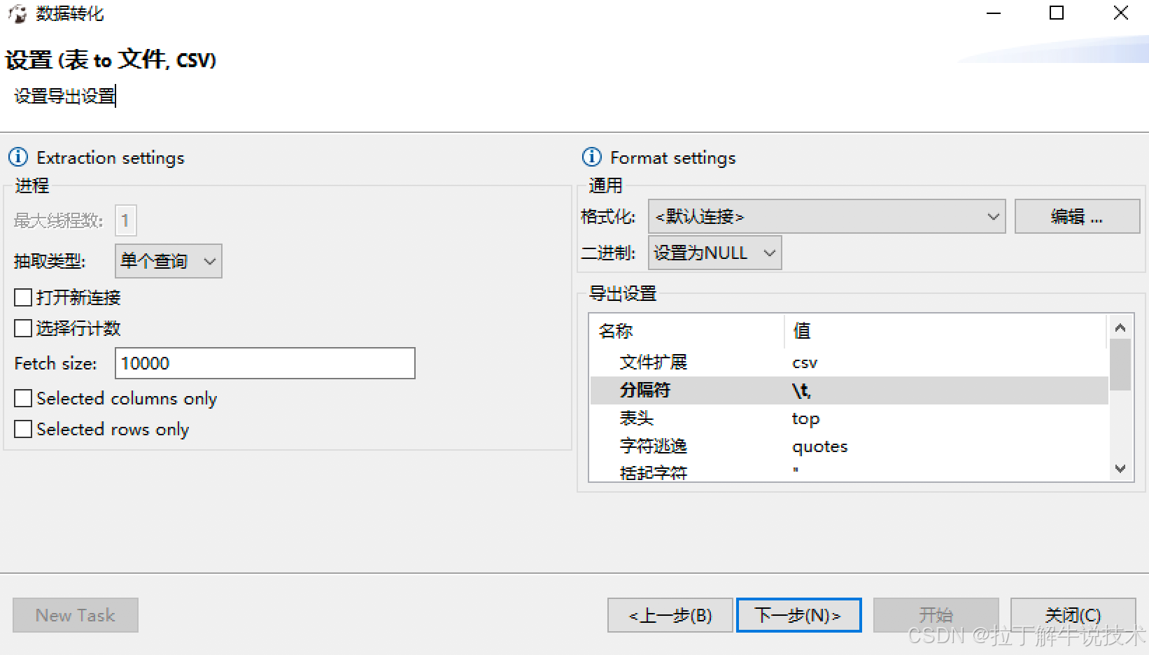 dbeaver默认分隔符是逗号,。我们通过在逗号前增加\t符号去解决。