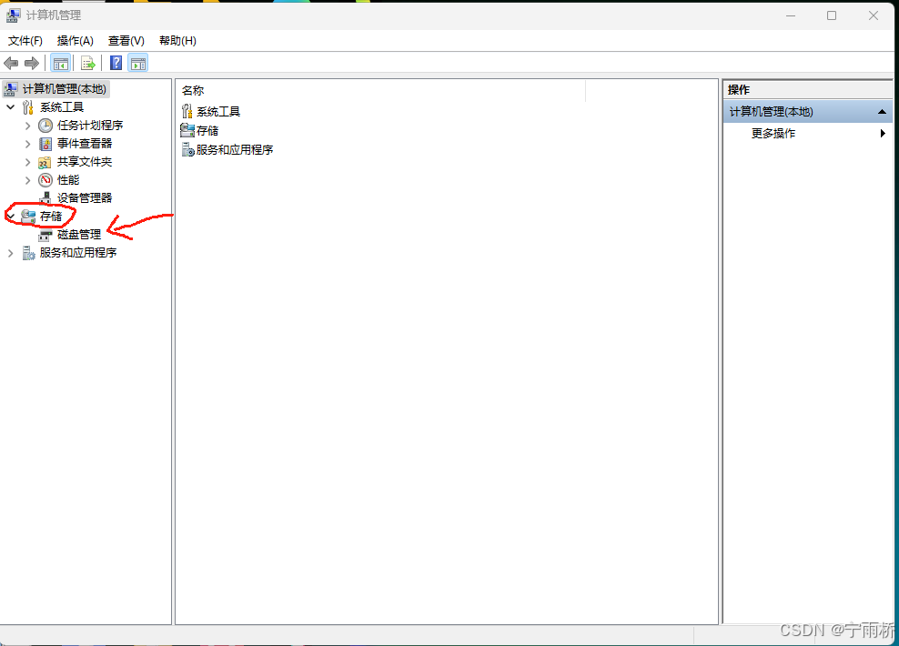 接下来呢我们需要在左侧的“存储”里点击磁盘管理