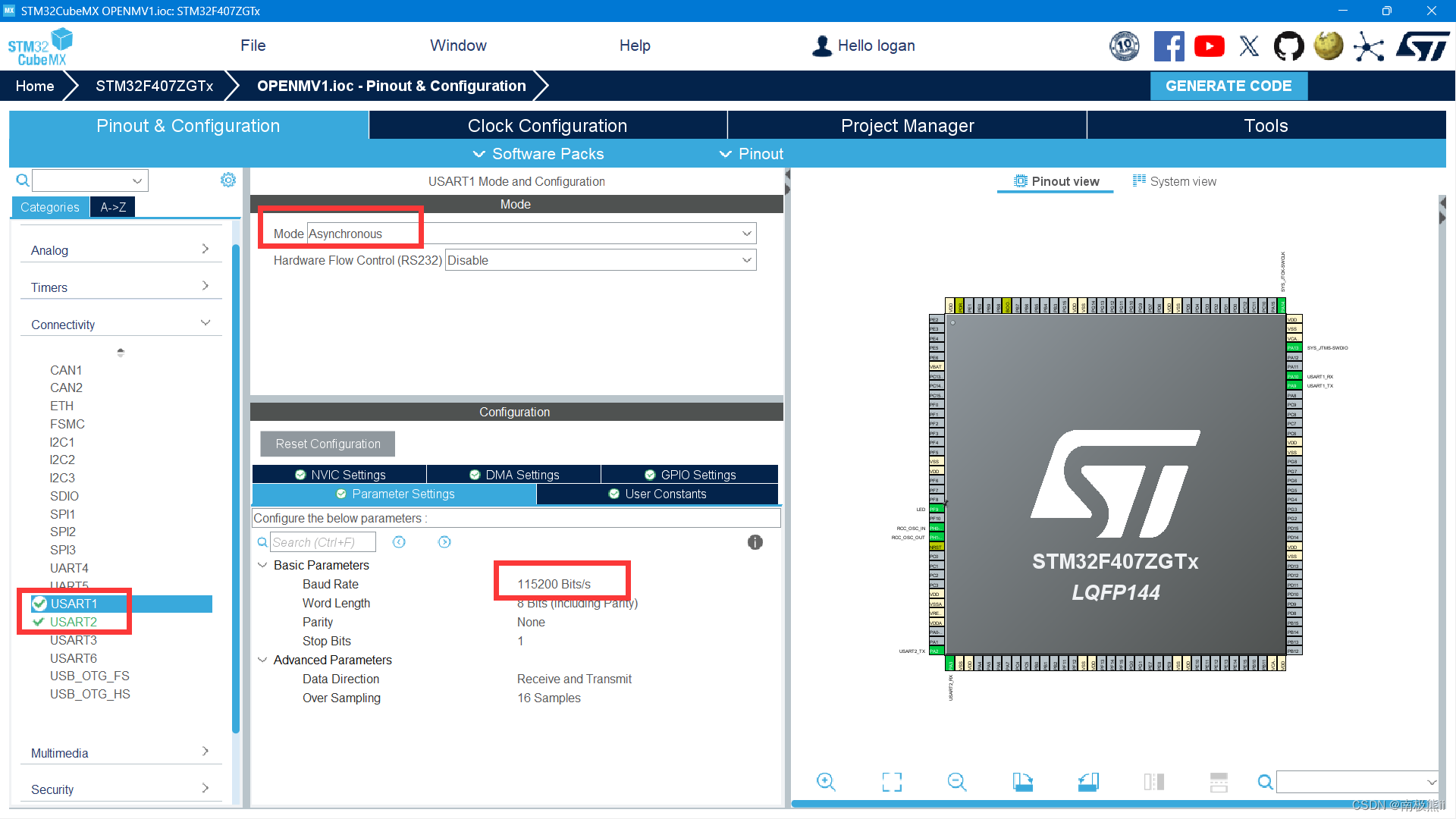 【STM32+HAL】与OpenMV通信。USART2:STM32与OPENMV通信。USART1:STM32与电脑通信。