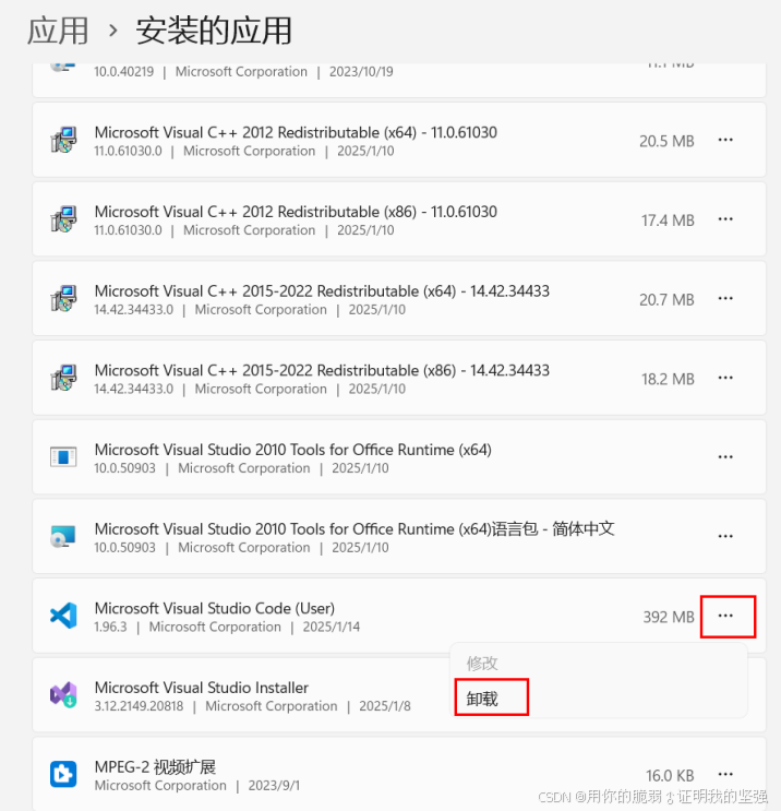 #因为下载vscode的过程中遇到了很多问题,于是频繁的卸载vscode成为了常事,所以记录一下vscode的卸载过程。(Windows11系统的卸载过程)