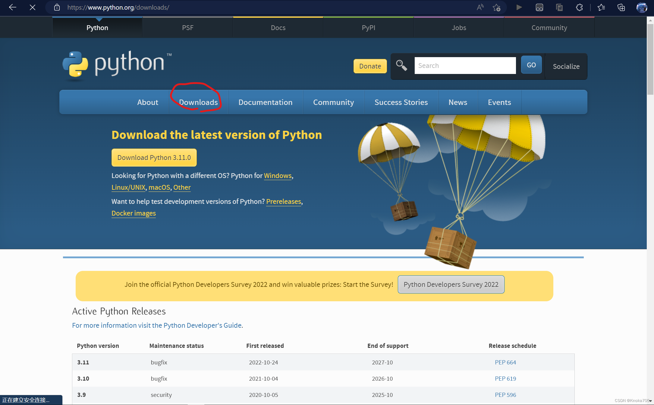 点击Downloads,往下滑找到对应版本3.8.1,下载