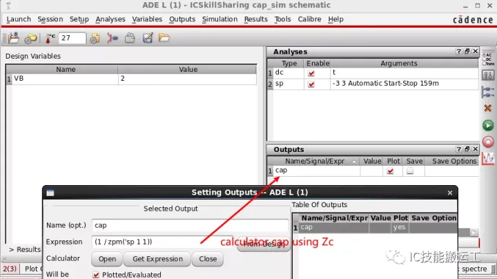 需要注意的是sp仿真得到的是阻抗值,按照上面公式所述,由于仿真时取频率为 f=12π ,所以得到的阻抗值在数值上与电容值的倒数一样,那么对仿真结果取倒数即可得到电容值。