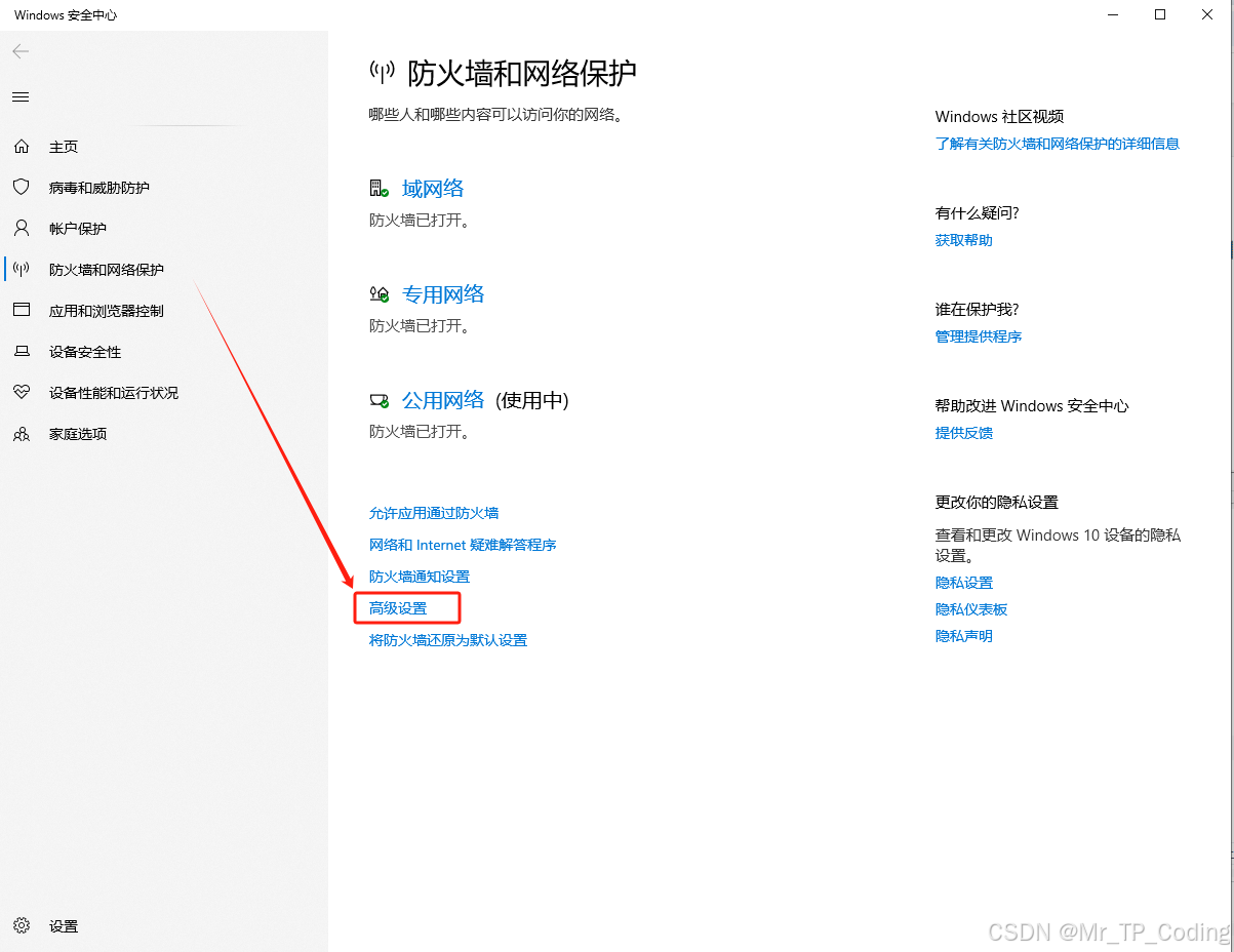 1、点击【开始】——【控制面板】——【系统和安全】——【Windows防火墙】——【高级设置】