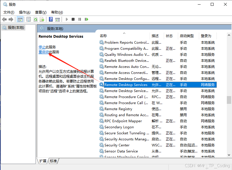 4、键盘按【Win+R】运行,输入【regedit】确认——打开【服务】,在服务里找到 【Remote Desktop Services】这个服务,选择重启动服务。选择【HKEY_LOCAL_MACHINE】👉【SYSTEM】👉【CurrentControlSet】👉【Control】3、点击下方的【WinStation】👉【RDP-Tcp】,同理找到【PortNumber】更改端口即可。