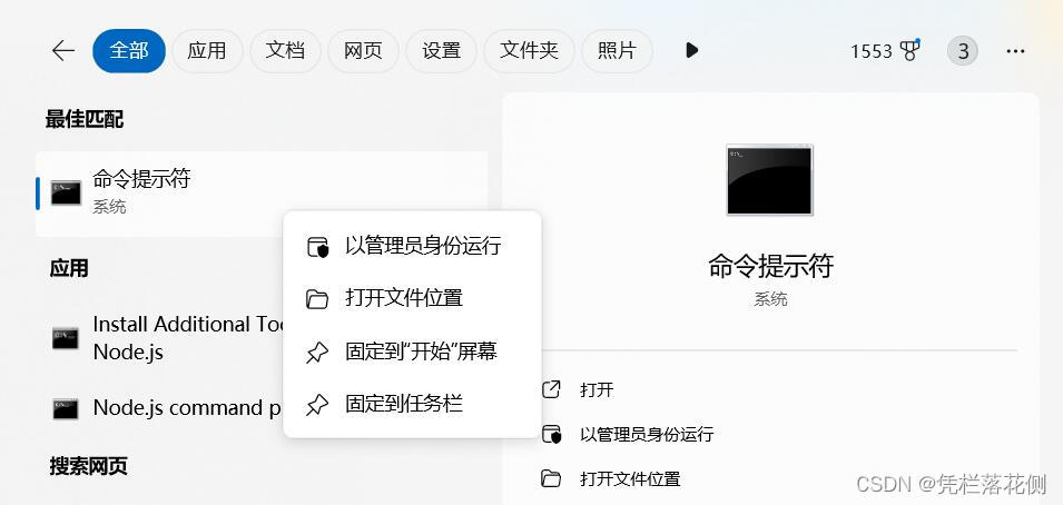 在开始菜单的搜索栏中,输入。右击上方该程序,选择。敲击回车,显示如下页面。