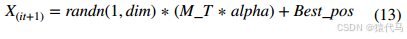 需要确保鹅以随机方式(通过 randn(1, dim) 函数)在搜索空间中探索个体。此外,M_T 和 alpha 变量都用于提高鹅算法的搜索性能。在方程 (13) 中,M_T 和 alpha 被随机数相乘,然后添加到搜索空间中的最佳位置: