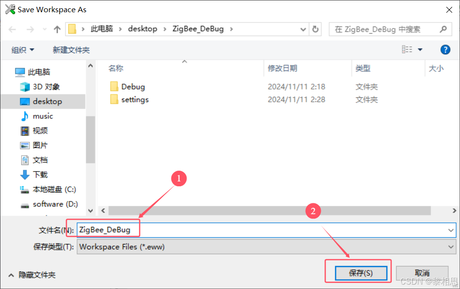 首先找到自己刚刚创建的文件夹,我的是在桌面上,然后为工程起一个名字,点击保存。